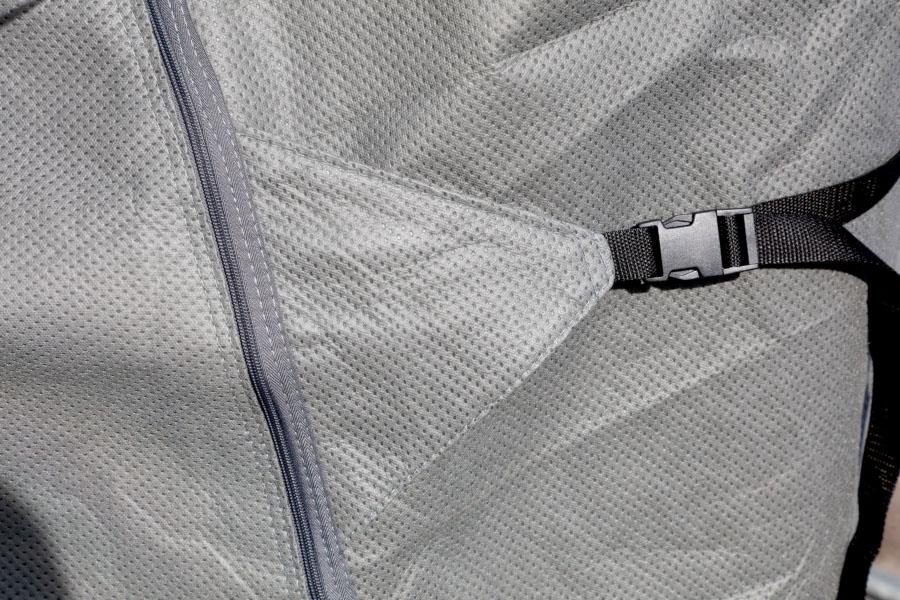 Wyposażony w zamki błyskawiczne i paski ściągające ułatwiające wejście do pojazdu