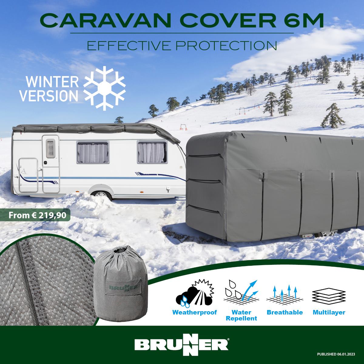 POKROWIEC NA PRZYCZEPĘ 700-750 cm ZIMOWY BRUNNER CARAVAN COVER