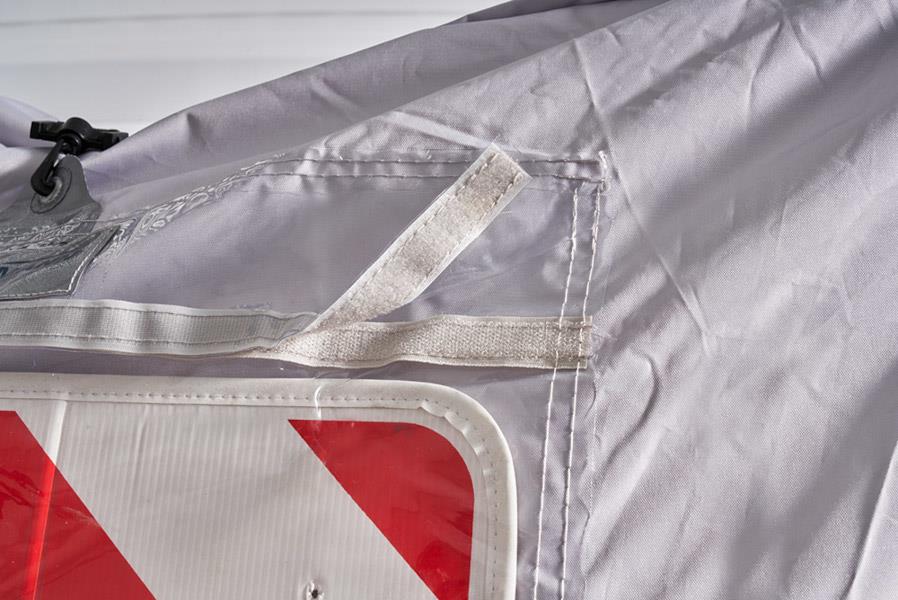 Przed rozpoczęciem jazdy upewnij się, że pokrowiec został starannie zabezpieczony pasami i nie jest luźny!
