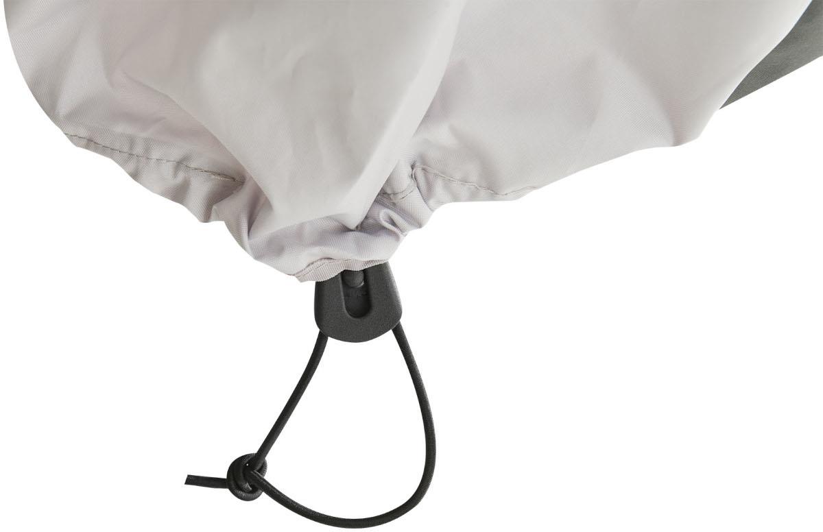 Wzdłuż dolnej krawędzi wszyta jest elastyczna taśma, aby mocniej dociągnąć pokrywę