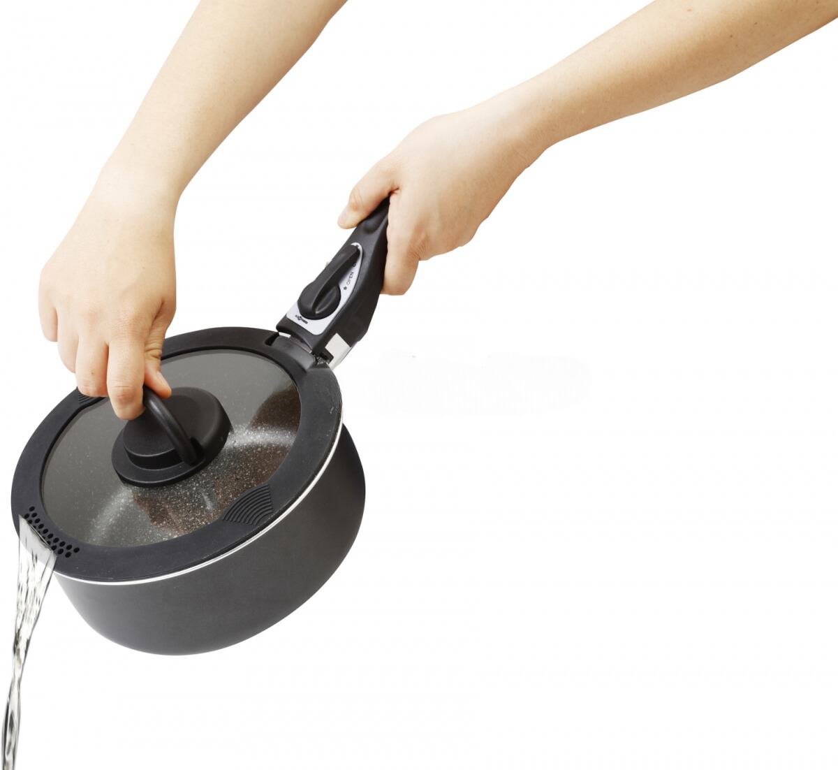 Posiada otwór na uchwyt do mocowania garnków i patelni