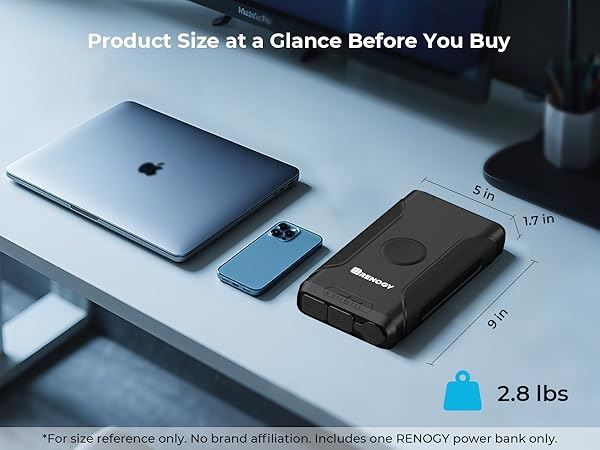 Power Bank Renogy 72000 mAh wyposażony w dwa porty USB-C PD: 60 W do laptopa i 27 W do telefonu. Pozwala na szybkie ładowanie w podróży i utrzymanie wszystkich urządzeń gotowych do pracy