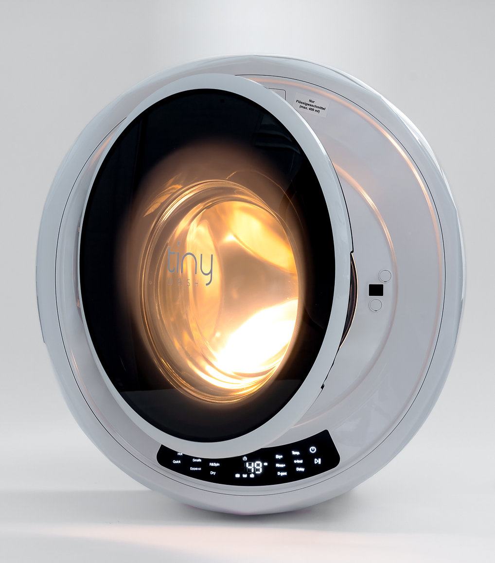 tinyWASH kontroluje ilość wody za pomocą zintegrowanego czujnika wsadu i posiada automatyczne dozowanie detergentu w płynie - w zależności od wsadu, pralka dostosowuje ilość użytego detergentu, wody i czas prania w programie