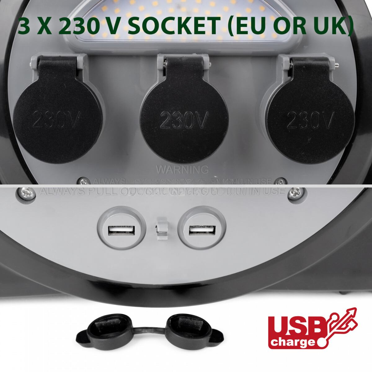 Trzy gniazda Schuko i dwa porty USB oferują wygodne opcje ładowania wielu urządzeń