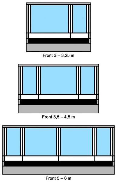Ściana przednia posiada drzwi, otwierane z prawej strony