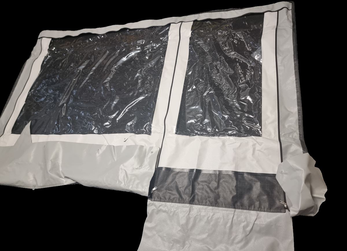 Okna wyposażone są w wysokiej jakości folię okienną, którą można łatwo otworzyć za pomocą zamka błyskawicznego