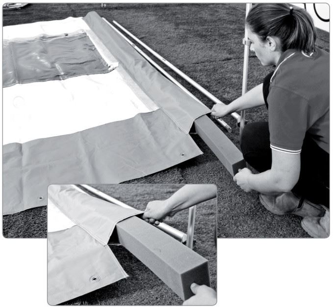 Panele boczne montuje się szybko za pomocą standardowych aluminiowych słupków napinających, panel przedni łatwo wsuwa się w panel przedni