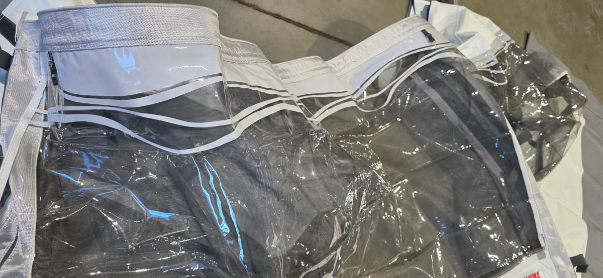 Z dodatkowymi zamkami błyskawicznymi, wszytymi w boczne, zewnętrzne krawędzie winylowego dachu - zamki te służą do bezpośredniego mocowania paneli bocznych Zip-on do dachu