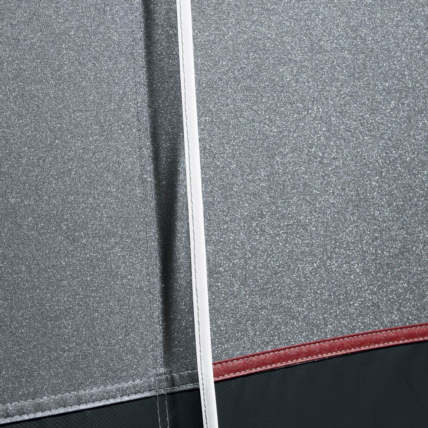 Dzięki markizie markizy marki Arcade Caravan oferujemy czwartej generacji jeszcze więcej korzyści. Ściana przednia jest zaprojektowana jako ściana ruchoma, więc możliwe są dwie różne pozycje drzwi. Oprócz przestronnych okien wentylacyjnych w przedniej ścianie, ściany boczne są teraz wyposażone w zamykaną wentylację z gazy. Materiał dachu pokryty jest metalem i ma od wewnątrz ozdobny nadruk.