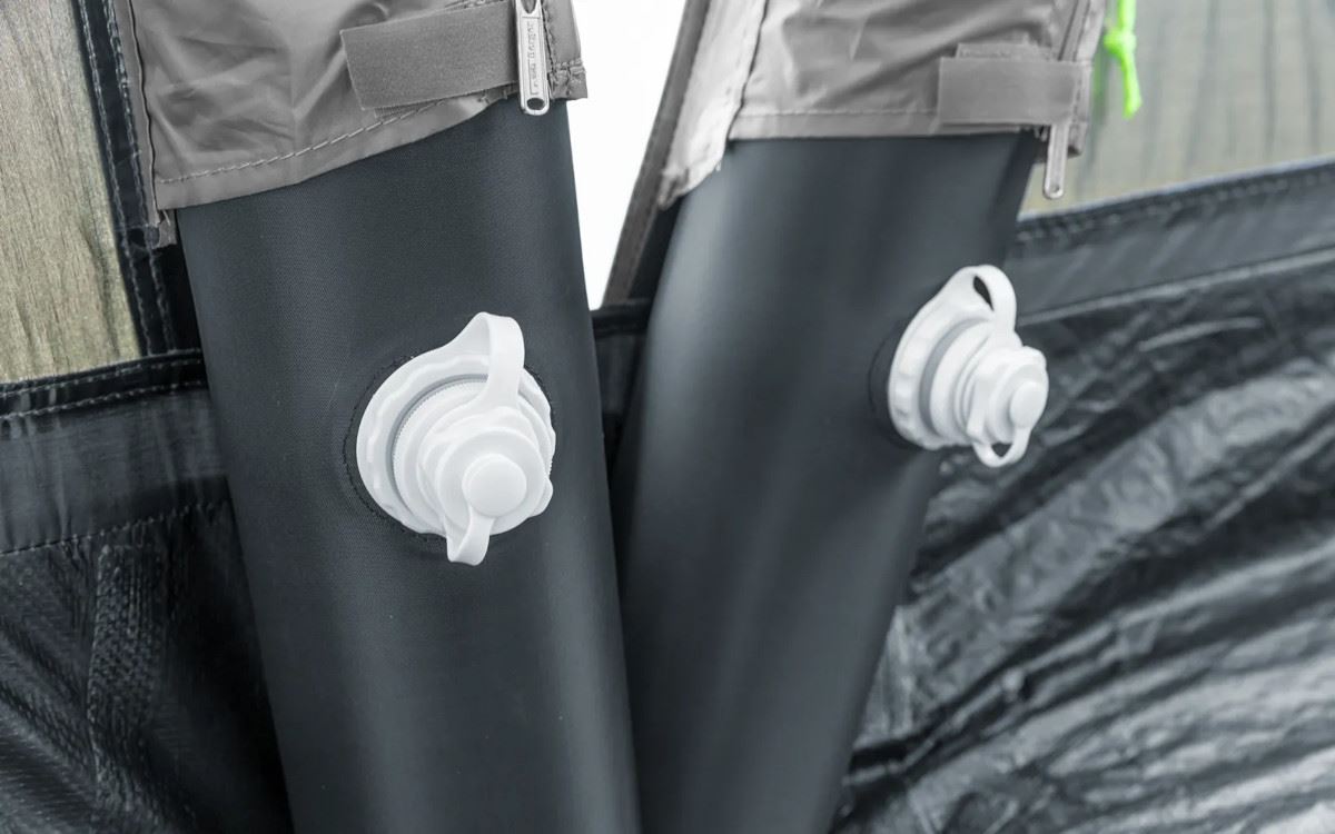 Idea tego systemu jest prosta, a jednocześnie sprytna: zastąpienie tradycyjnych metalowych lub z włókna szklanego drążków nadmuchiwanymi tubami, zachowując istotne cechy wytrzymałości i stabilności. Proces pompowania jest zadziwiająco szybki i łatwy. Dostarczona pompka jest bezpieczna i wygodna w obsłudze.