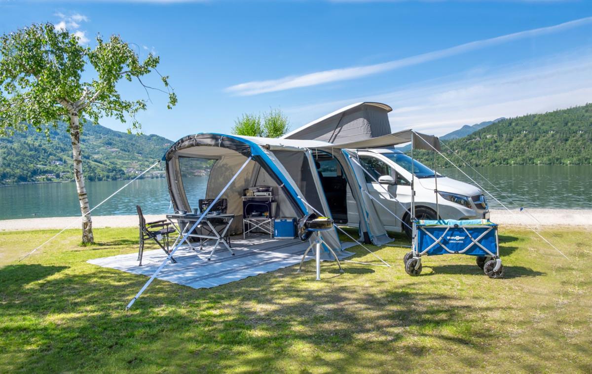 Nadmuchiwany przedsionek można postawić w ciągu zaledwie kilku minut dzięki nowoczesnej technologii AIR Tech