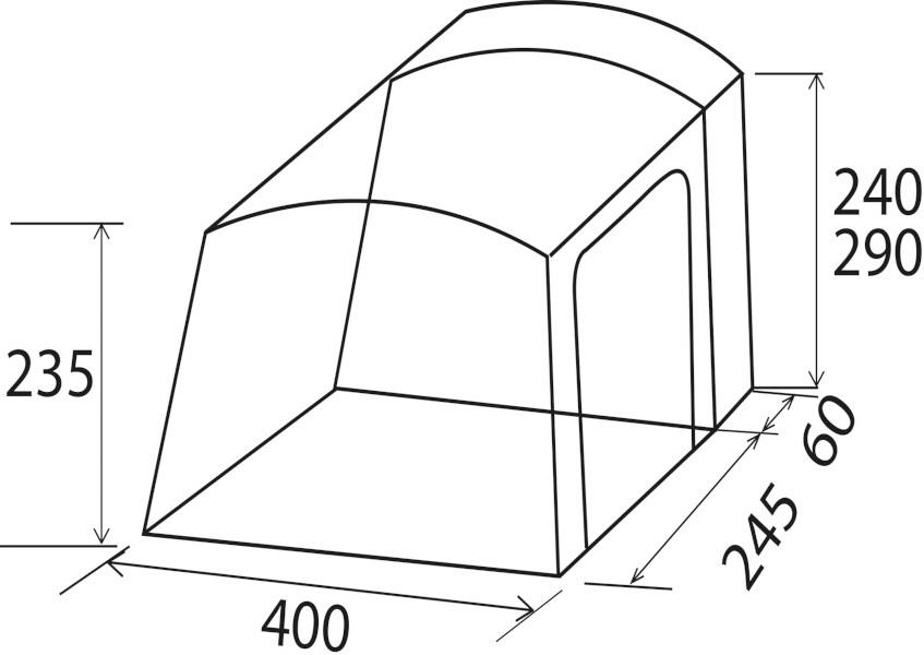Wymiary: 400 x (245+60) x wys.240/290 cm
