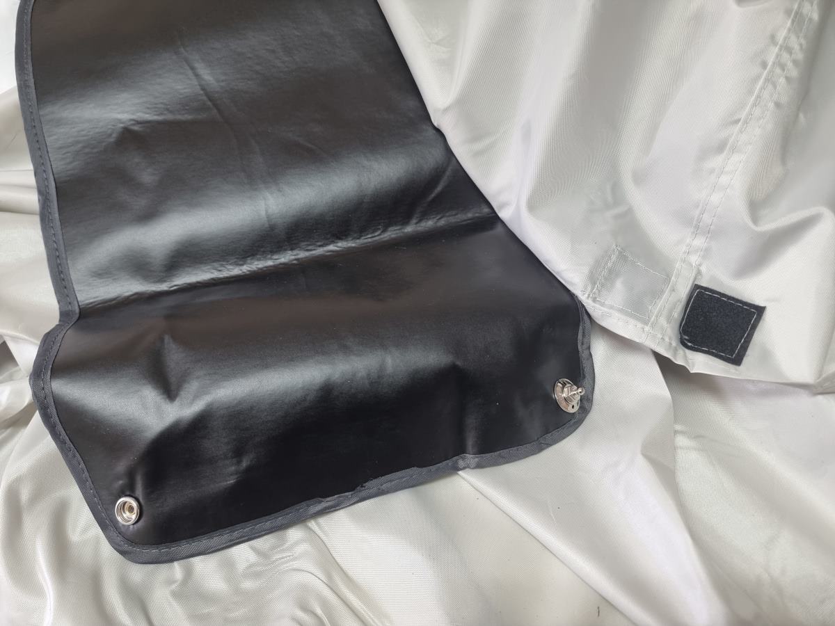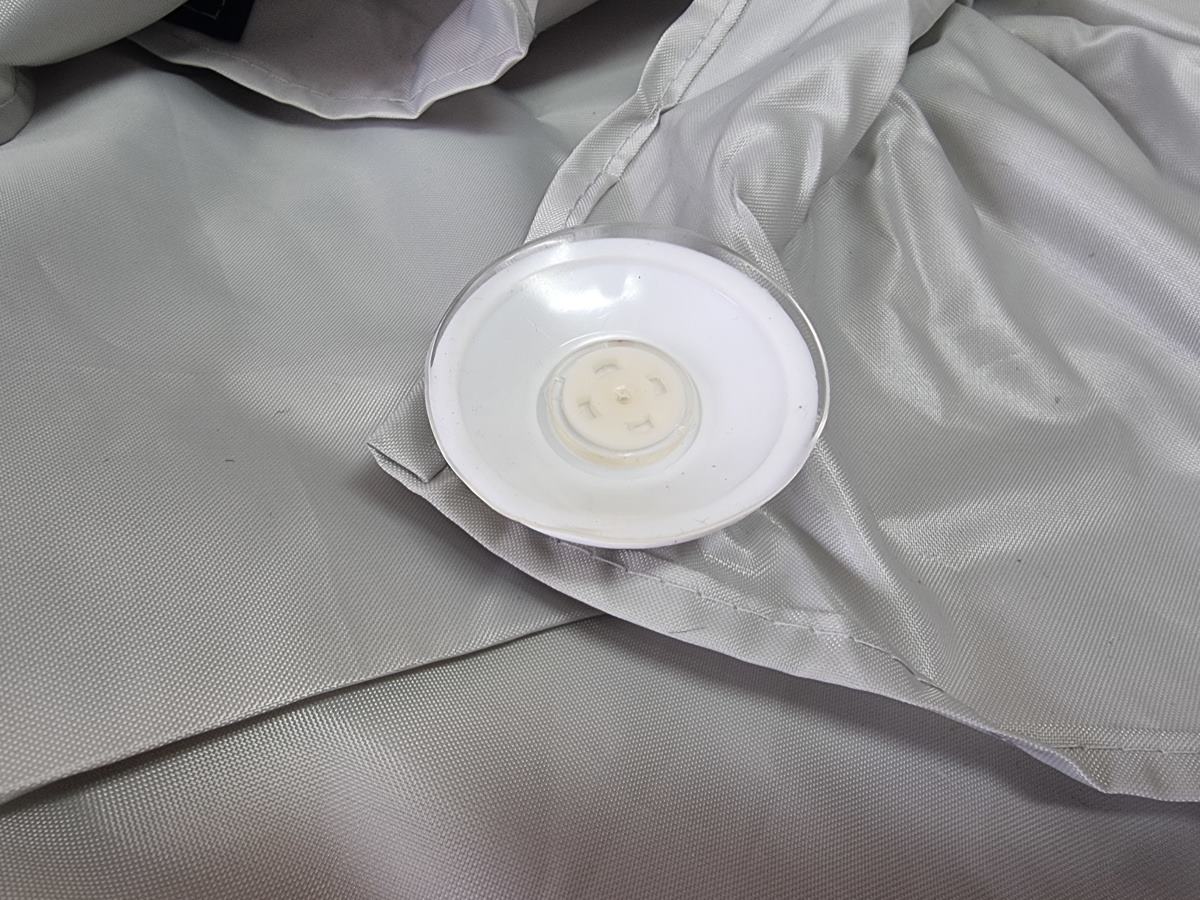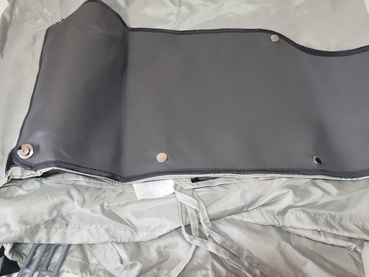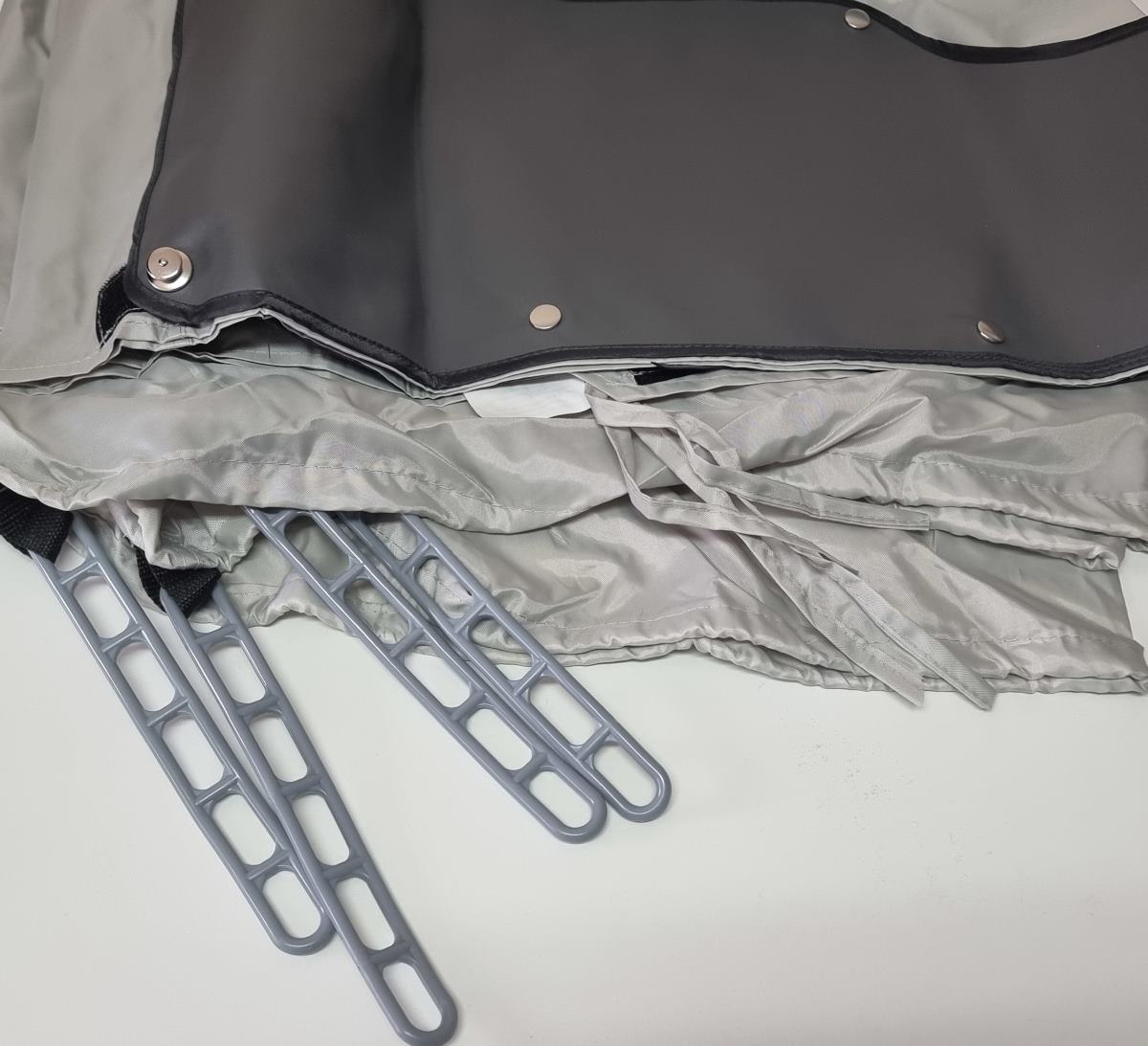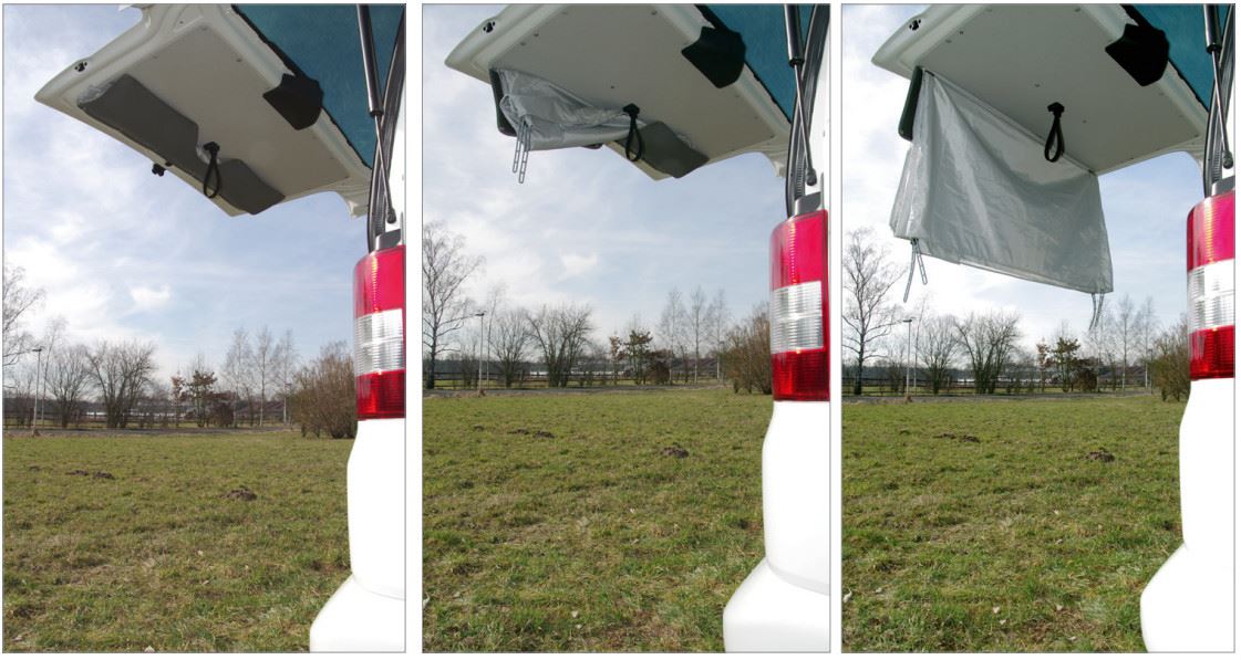 Tylny namiot jest wszyty w torbę i mocowany do tylnej klapy za pomocą zatrzasków (