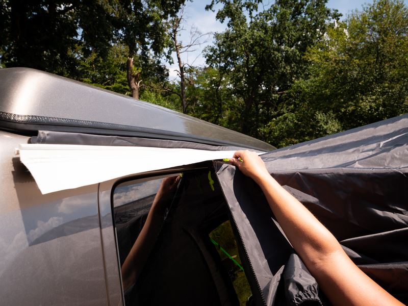 Możliwość zwinięcia drzwi wejściowych oraz bocznych