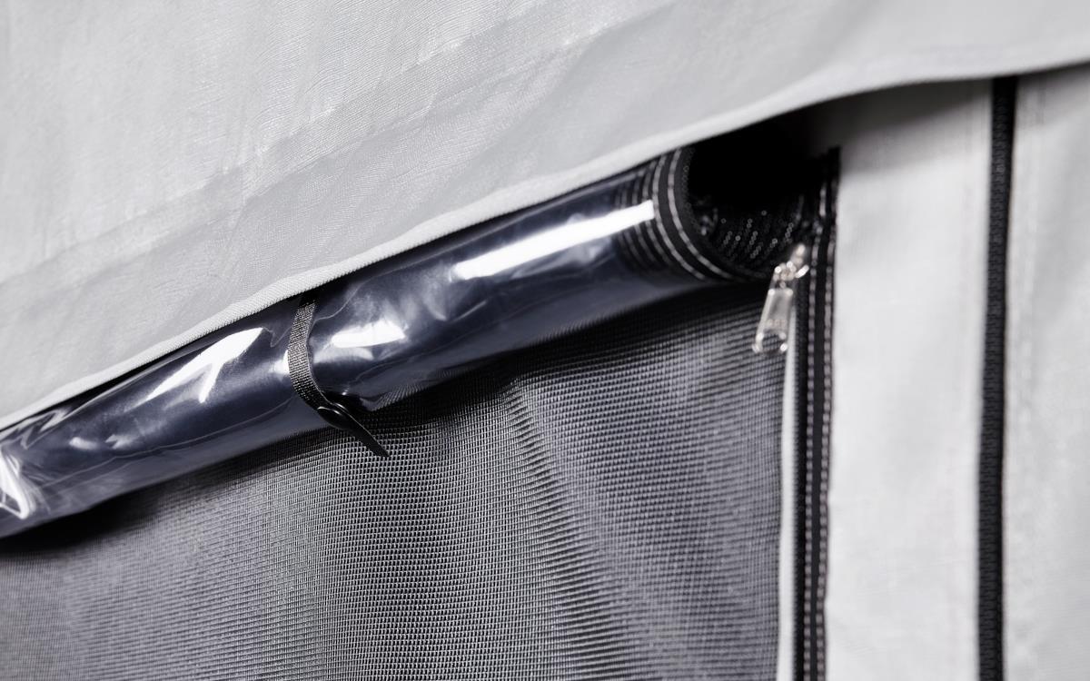 Okna wyposażone są w wysokiej jakości folię okienną, którą można łatwo otworzyć za pomocą zamka błyskawicznego