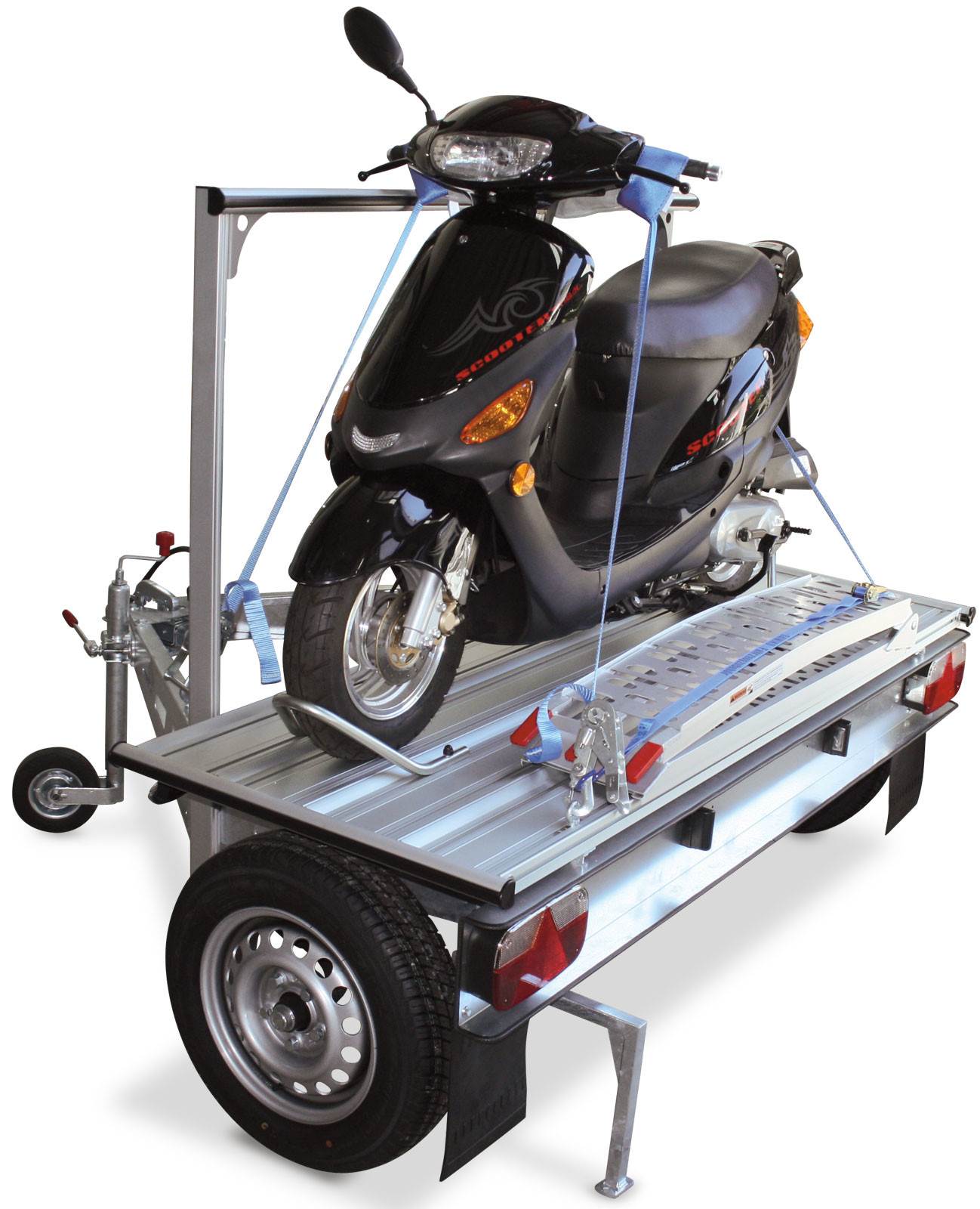 Dzięki zintegrowanym szynom w platformie opcjonalne wsporniki kół do skuterów lub osłony kół dla maksymalnie 4 rowerów można płynnie regulować i łatwo doposażać