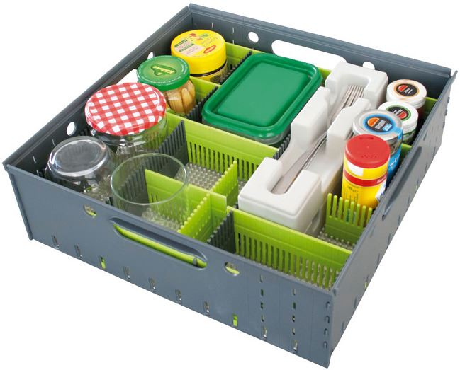 Szczególną cechą pudełek do przechowywania jest możliwość skrócenia ich ścianek bocznych, płyty z wypustkami i listew do przechowywania