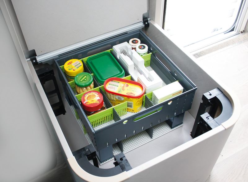 System zabezpieczający przed przesuwaniem się przedmiotów w szafkach i szufladach w trakcie podróży