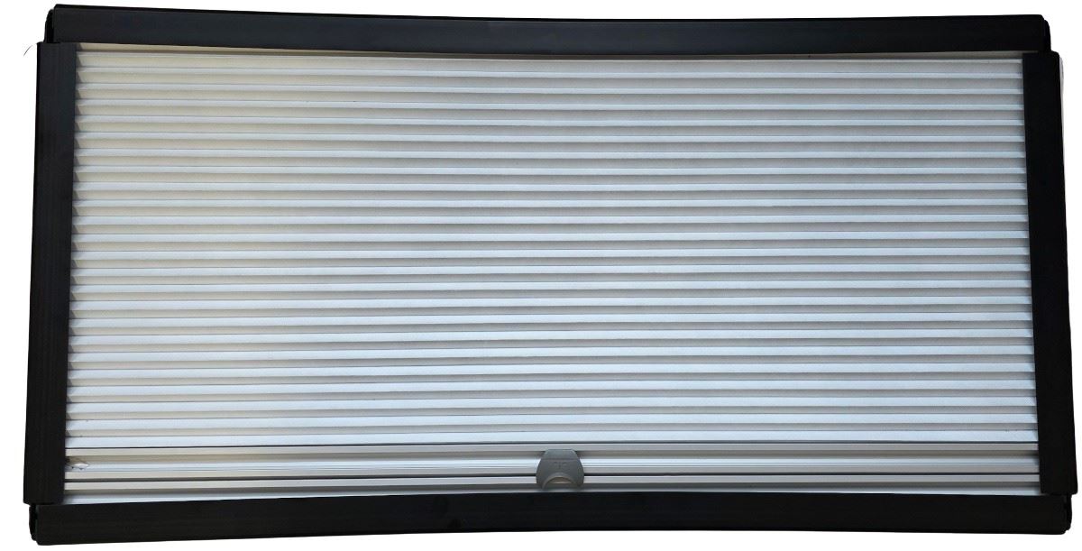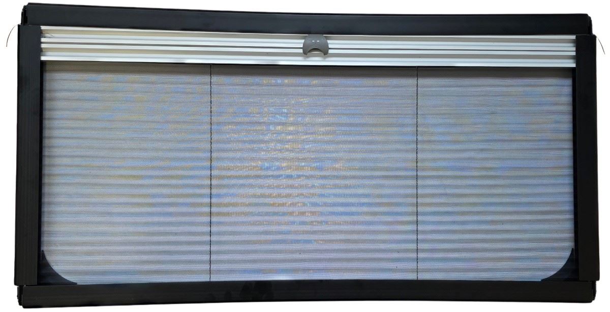 Wewnętrzna rama wyposażona jest w regulowane niezależnie od siebie żaluzje zaciemniające i moskitierę