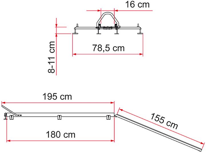 Składa się z dwóch teleskopowych szyn, jedna z paskiem antypoślizgowym