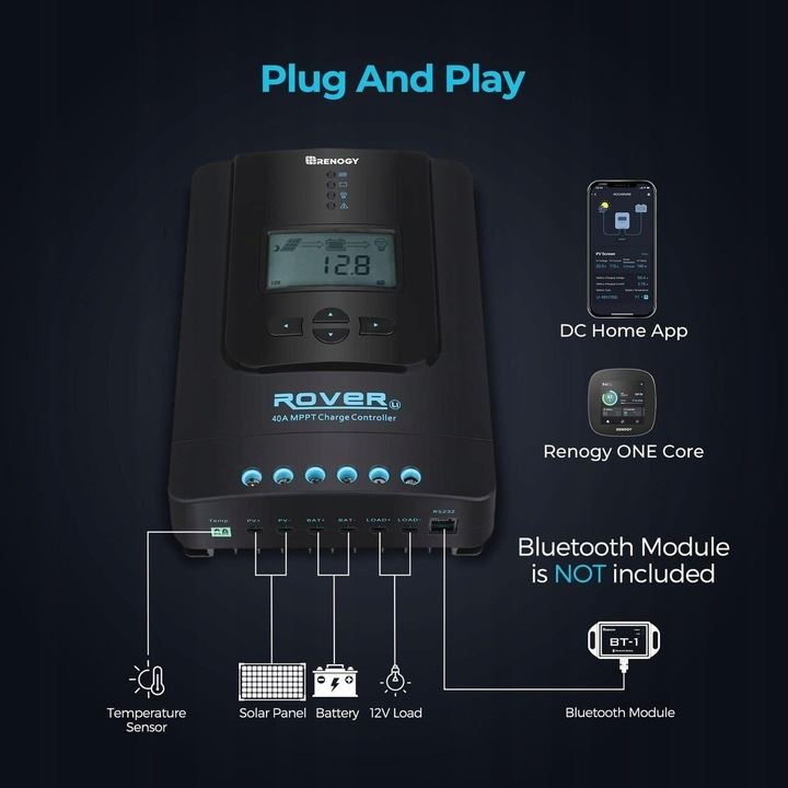 Różnorodne opcje sterowania obciążeniem i zdalnego monitorowania (Dzięki modułowi Bluetooth Renogy, nie wchodzi w skład zestawu)