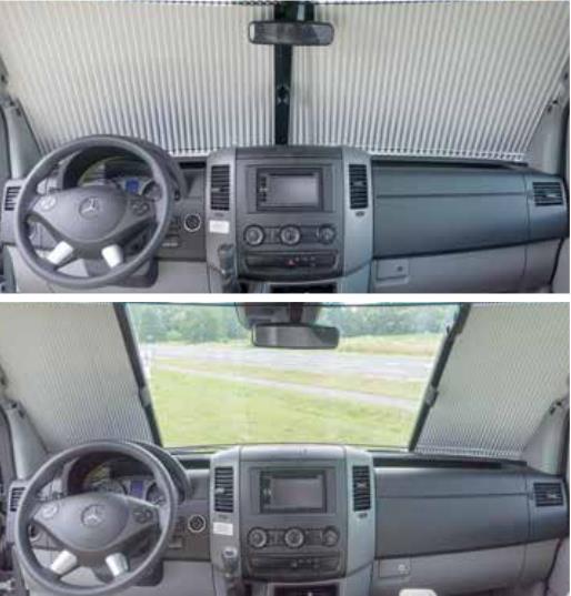Po zwinięciu niewidoczne, nie ograniczają pola widzenia kierowcy