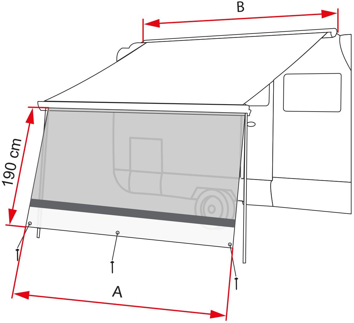 Minimalna długość markizy (B): 370 cm
