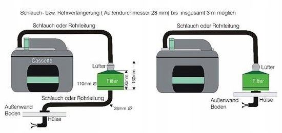 Wentylator montowany jest bezpośrednio po wewnętrznej stronie klapy utylizacyjnej. Obudowa z filtrem z węglem aktywnym jest przymocowana na zewnątrz