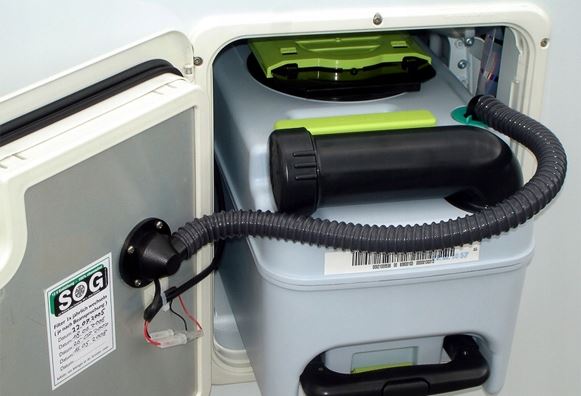 Wentylator montowany jest bezpośrednio po wewnętrznej stronie klapy utylizacyjnej. Obudowa z filtrem z węglem aktywnym jest przymocowana na zewnątrz