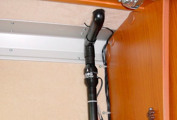 Wysokowydajny wentylator umieszczony jest bezpośrednio pod kanałem dachowym i gwarantuje odpowiednie podciśnienie nawet przy długości rury wynoszącej do trzech metrów