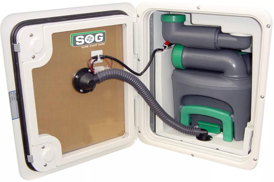 Wentylator montowany jest bezpośrednio po wewnętrznej stronie klapy utylizacyjnej. Obudowa z filtrem z węglem aktywnym jest przymocowana na zewnątrz