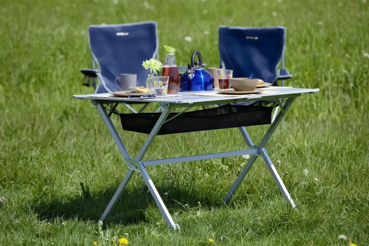 Wytrzymały, aluminiowy blat można zwinąć, oszczędzając miejsce podczas przechowywania
