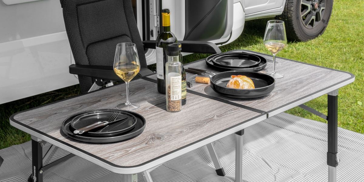 Bardzo stabilny, ultralekki stół ze składanym blatem