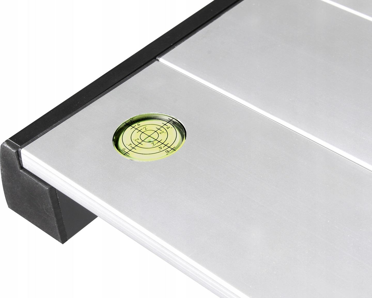 Jedna noga stołu z blokadą, z regulowaną wysokością, co pozwala na wypoziomowanie stołu praktycznie w każdym terenie