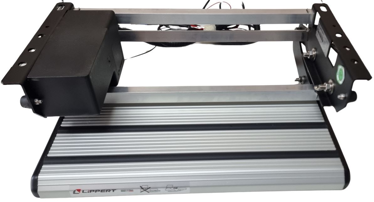 Pojedynczy, elektryczny stopień wejściowy do kamperów i przyczep kempingowych