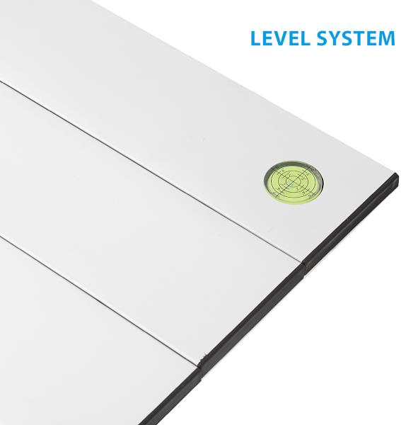 Górny blat rolowany, wykonany z wytrzymałego aluminium ze zintegrowanym systemem poziomowania