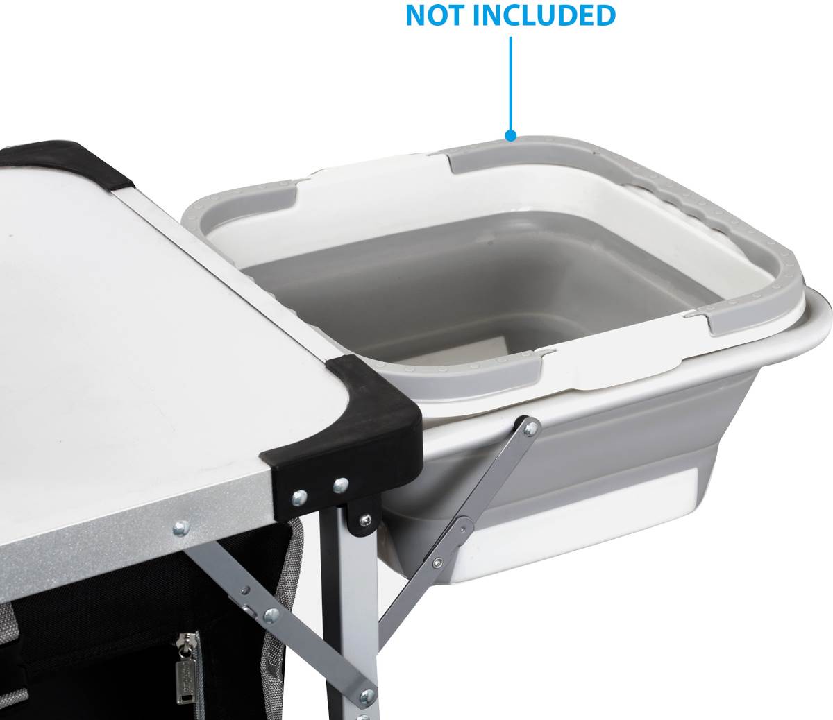 Zawiera składaną na bok ramę do włożenia wiaderka bądź miski