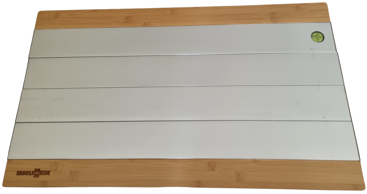 Rolowany, elegancki, aluminiowy blat z bambusowymi listwami końcowymi