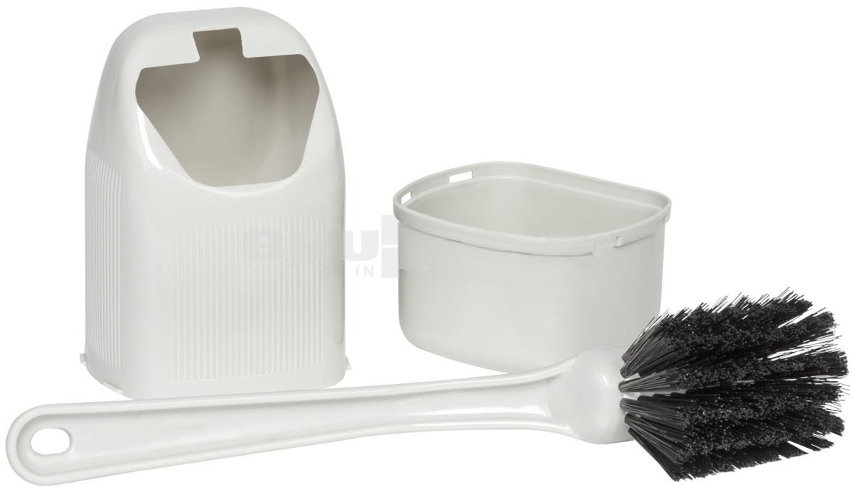 Kompaktowa szczotka toaletowa z dwuczęściowym pojemnikiem, szczególnie odpowiednia do stosowania w przyczepach kempingowych i kamperach
