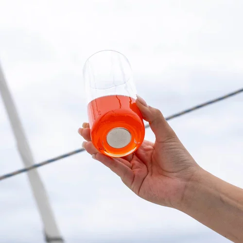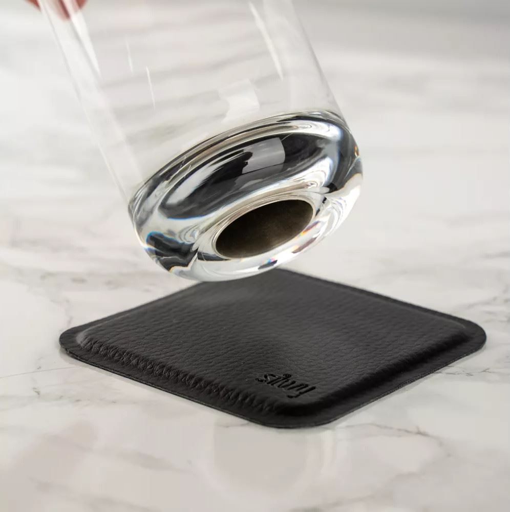 W dolnej części kryształowych szklanek umieszczono elegancki, ręcznie odlewany magnes