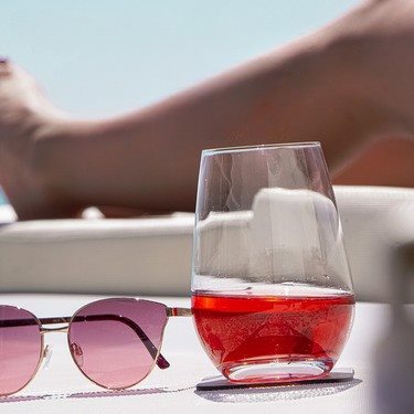 W dolnej części kryształowych szklanek umieszczono elegancki, ręcznie odlewany magnes