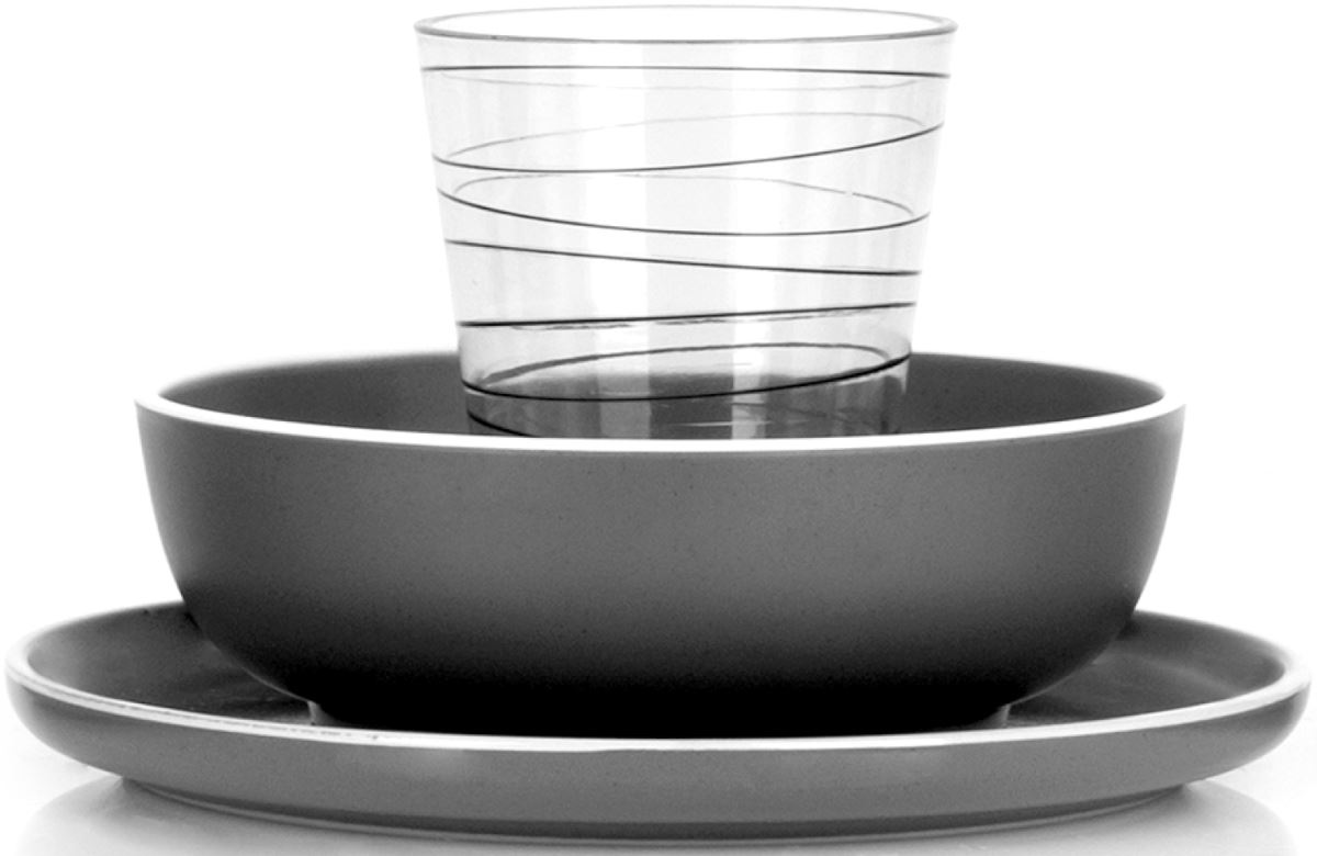 Każde naczynie od spodu podklejone jest gumą - to sprawia że naczynia są stabilne a użytkowanie w trakcie podróży jest w pełni bezpieczne i komfortowe