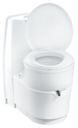 Model C224-CW oferuje wygodę posiadania toalety wewnątrz pojazdu bez podłączania jej do zbiornika świeżej wody RV, dzięki zintegrowanemu zbiornikowi świeżej wody