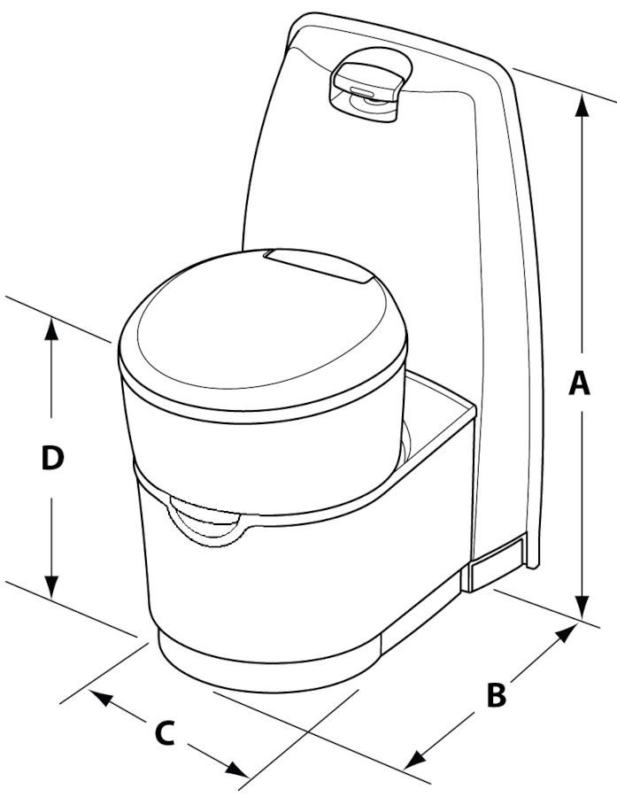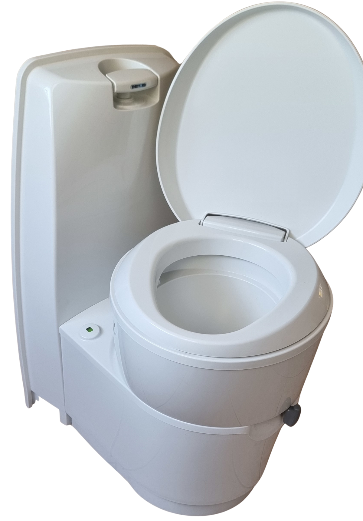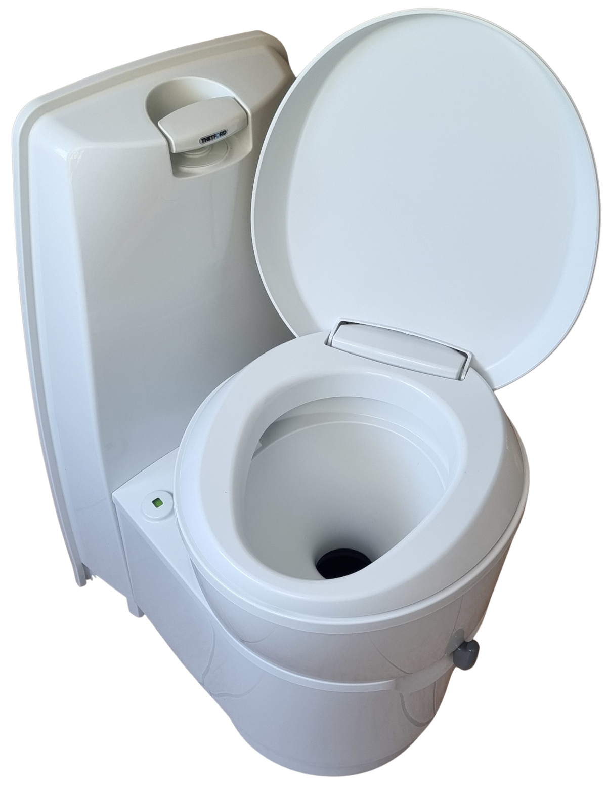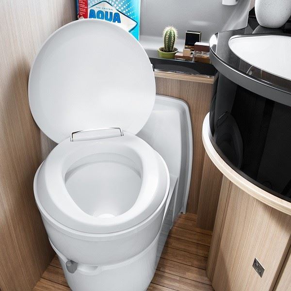 Model C224-CW oferuje wygodę posiadania toalety wewnątrz pojazdu bez podłączania jej do zbiornika świeżej wody RV, dzięki zintegrowanemu zbiornikowi świeżej wody