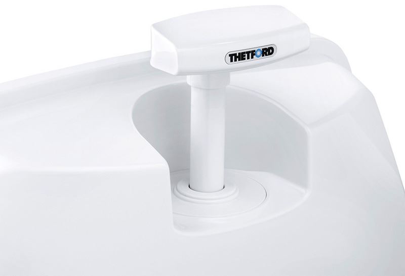 Kaseta toaletowa zawiera uchwyt i kółka ułatwiające opróżnianie
