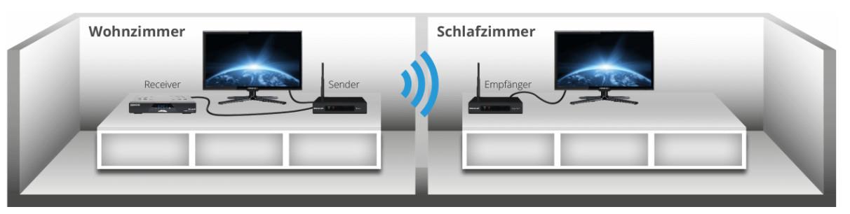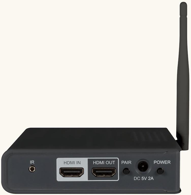 Nadajnik posiada wejście HDMI (np. dla tunerów satelitarnych) i wyjście HDMI do telewizora, które może zapętlać sygnał nawet w stanie czuwania. Dołączony czujnik podczerwieni pozwala na obsługę urządzenia HDMI jak zwykle za pomocą oryginalnego pilota. Transmisja sygnału HD nie jest opóźniona i jest odpowiednia dla wszystkich formatów HD (do 1080p). Zasięg sygnału wynosi do 30 metrów i dlatego jest gotowy do użycia w całym domu.