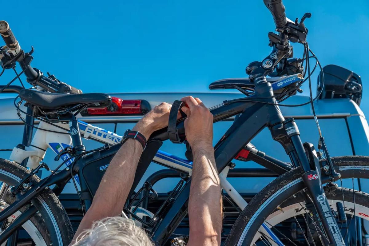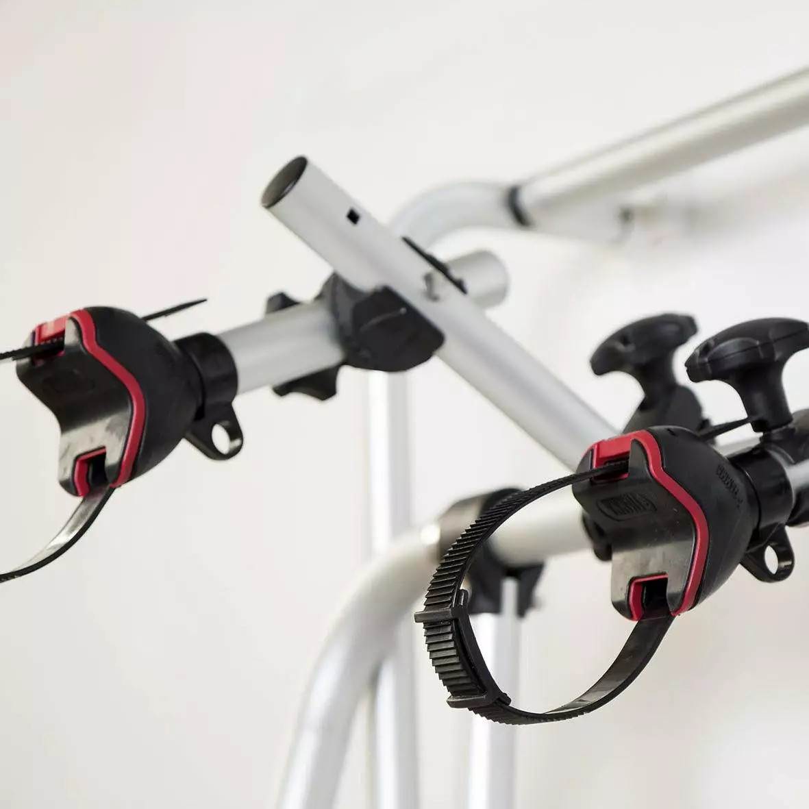 Pokrętło, które mocuje blokadę rowerową do Carry-Bike w zmienionej pozycji, umożliwia swobodne obracanie obejmy