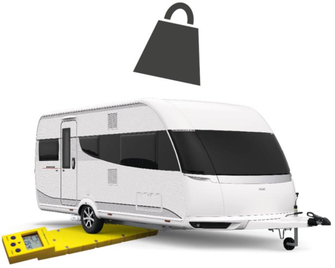 Daje to pełną kontrolę nad całkowitą masą przyczepy kempingowej i częściowym obciążeniem poszczególnych kół
