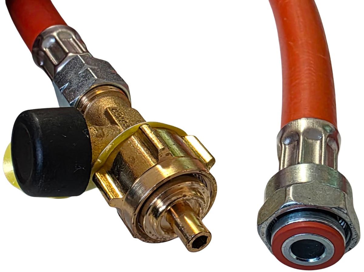 W przypadku uszkodzenia węża, zabezpieczenie zostaje aktywowane i zatrzymuje przepływ gazu