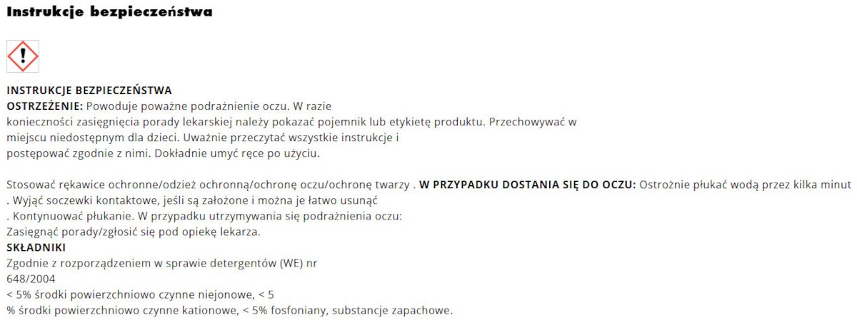 Ważne: nie stosować w słońcu i na rozgrzane powierzchnie. Nie dopuścić do zaschnięcia preparatu na powierzchni.